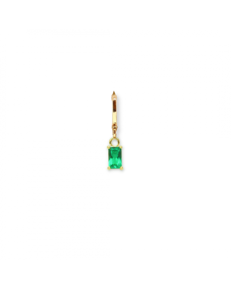 Créole rectangle avec zircone vert en laiton doré à l'or fin vendue à L'UNITE