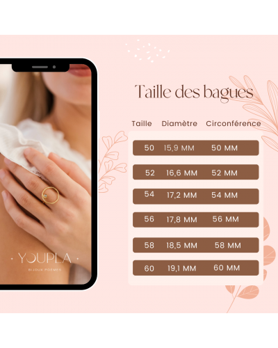 2. Placez une de vos bagues sur une règle et reportez la mesure du diamètre sur le tableau comparatif. Si vous hésitez d'un ou deux millimètres, arrondissez vers le haut.