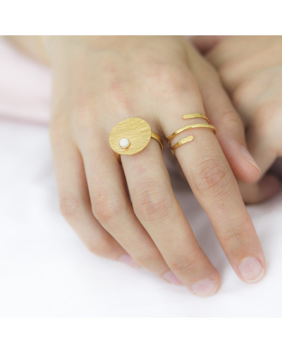 Bague spirale martelée Athéna, la déesse protectrice des artisans. Modèle réalisé à la main en laiton doré à l'or fin ou rhodié (argenté). Chaque pièce est unique et ajustable. Ce modèle peut se porter à tous les doigts. N'hésitez pas à nous communiquer la taille de votre doigt si vous souhaitez que la bague soit ajustée par nos soins.