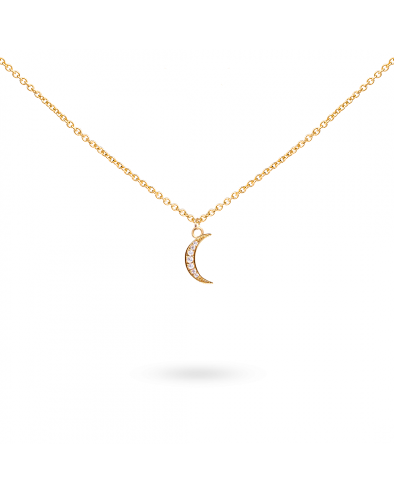 Collier lune & strass blanc en laiton doré ou argenté (rhodium)