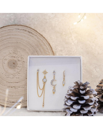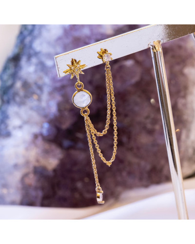 Boucle d'oreille double "Allégorie Cosmique" composée de deux puces d'oreille reliées par deux chaînes.